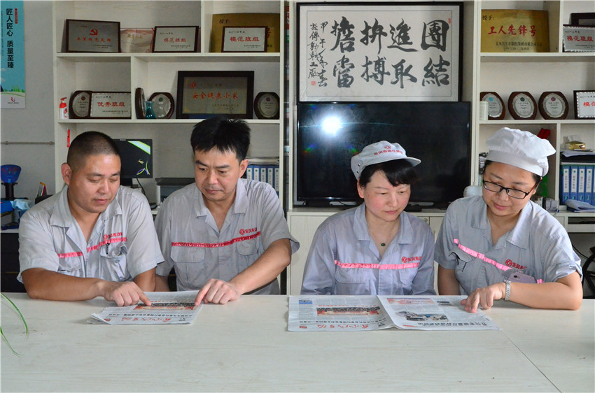 ■東風傳動軸公司員工認真閱讀東風公司第九次黨代會報道